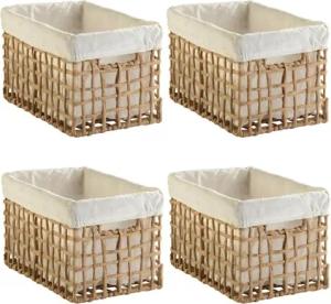 Aufbewahrungskörbe 4er Set - 30 x 19 cm - Beige - Braun - Draht - Papier - mit Stoffeinsatz - Aufbewahrungsbox Aufbewahrungskiste