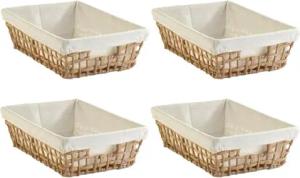 Aufbewahrungskörbe 4er Set - 30 x 20 cm - Beige - Braun - Draht - Papier - mit Stoffeinsatz