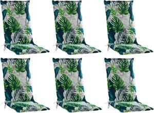 Gartenstuhlauflagen Hochlehner 6er Set - 120 x 50 cm - Blau - Grau - Grün - Baumwolle - Polyester - Blattmotiv - Sesselauflage Sitzpolster Stuhlauflage