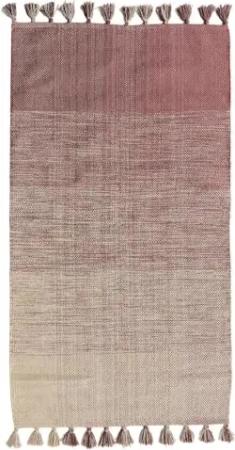 Handwebteppich Wohnzimmerteppich Webteppich - Baumwollmischgewebe - Altrosa - mit Farbverlauf und Quasten - 90x160 cm