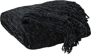 Kuscheldecke Wohndecke Tagesdecke | Chenille | Polyester | Schwarz | 130x180 cm