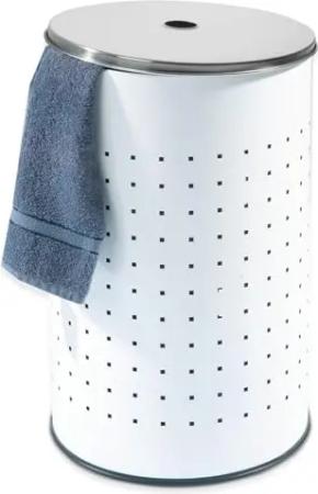 Wäschekorb mit Deckel und Luftlöchern - Edelstahl - Weiß - 37 L - Ø 29 cm - 54 cm hoch - Wäschetonne Wäschesammler Wäschebox Wäschetruhe