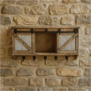 Rustikaler Wandschrank mit Schiebetüren und Haken Landhausstil für Flur, Küche oder Wohnzimmer