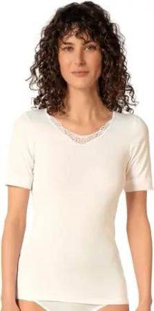 Damen Shirt Kurzarm Cotton Embroidery 015030 Gr. 42 in White