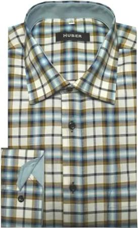 Herren Hemd Langarm blau kariert mit Kontrast softweicher Twill 5XL