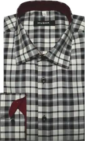 Herren Hemd Langarm rot grau kariert mit Kontrast softweicher Twill 5XL