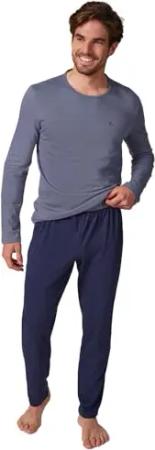 Herren Pyjama lang hautnah Night Basic Selection 110099 Gr. XXL in Faded Denim