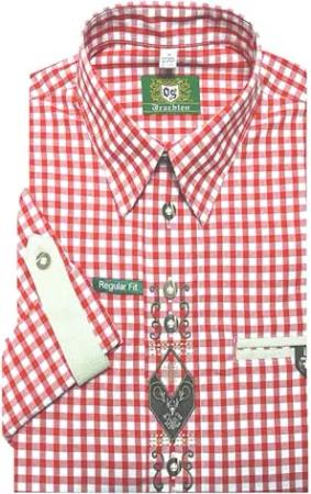 Trachtenhemd rot-weiß mit Stickerei und Krempelärmel M