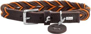 Hundehalsband SWISS, Farbe: braun/schwarz, weiches Rindnappaleder, handvernähte Schweizer Kreuze, langlebig und komfortabel, hochwertige Handarbeit, Made in Germany, Größe: XS-S (37)