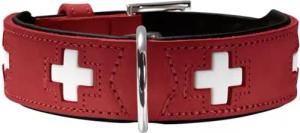 Hundehalsband SWISS, Farbe: rot/schwarz, weiches Rindnappaleder, handvernähte Schweizer Kreuze, langlebig und komfortabel, hochwertige Handarbeit, Made in Germany, Größe: L (65)