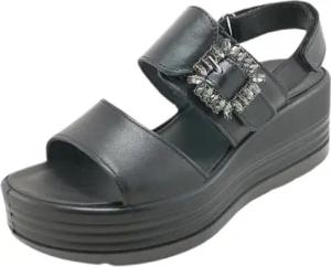 D.clea, Damen-Sandalen mit Keilabsatz, Schwarz, 38 EU