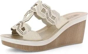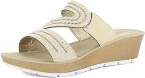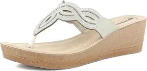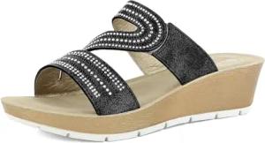 Damen Keilabsatz Hausschuhe aus Kunstleder mit gepolstertem Fußbett, quadratisch und Strass, 35/41 Keilsandale, Platin, 40 EU