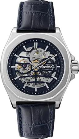 The Riff Mens Automatic Watch I07402 with a Silver Dial and a Black Genuine Leather Band