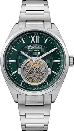 The Shelby Herren-Automatikuhr, 44 mm, mit grünem Zifferblatt mit offenem Herzen und silbernem Edelstahlarmband I10903B