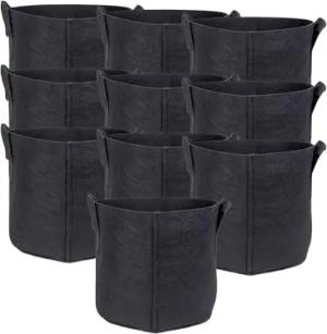 10x Pflanzsack aus Vlies Stoff 11 Liter -3 Gallon- 25 x 22 cm - Pflanzen Übertopf mit Tragegriffen für Garten, Gewächshaus - Pflanzkübel Pflanzgefäß Pflanzbeutel Pflanztasche Kartoffelsack