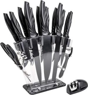 17-teiliges Set Küchenmesser mit Messerblock und Schärfer Sparschäler multifunktionale Schere und Messer - 36 x 11.5 x 23.5 cm - Zum Schneiden Schälen und auch Knacken von Walnüssen