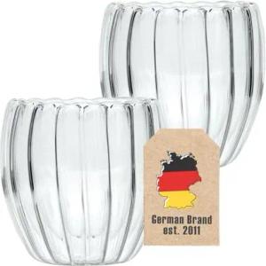 2x Doppelwandige Thermo Gläser -Striped Style- 190 ml Füllmenge - Tassen Set 2 teilig- Schwebeeffekt, Mundgeblasen isoliert für Cappuccino Latte hitzebeständiges Tee Kaffee Glas ohne Henkel