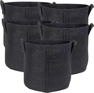 5X Pflanzsack aus Vlies Stoff 11 Liter -3 Gallon- 25 x 22 cm - Pflanzen Übertopf mit Tragegriffen für Garten, Gewächshaus - Pflanzkübel Pflanzgefäß Pflanzbeutel Pflanztasche Kartoffelsack
