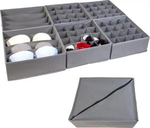 Aufbewahrungsboxen Ordnungssystem 6-teilig für Schubladen aus Vlies in Grau - Zwei 4-Fach Boxen 33x26x11 / Vier 16-Fach Boxen 28.5x26x11 cm - Faltbare Organizer für Unterwäsche Socken