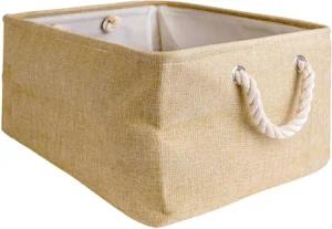 Aufbewahrungskorb Organizer mit Henkel in Beige - 41 x 31.5 x 21 cm - Gefaltet 41 x 33.5 x 5.5 cm - Praktische Aufbewahrungs Box für Regale Ablagen als Deko mit Deckel