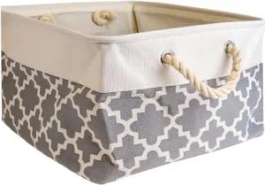 Aufbewahrungskorb Organizer mit Henkel in Grau mit Muster - 41 x 31.5 x 21 cm - Gefaltet 41 x 33.5 x 5.5 cm - Praktische Aufbewahrungs Box für Regale Ablagen als Deko mit Deckel