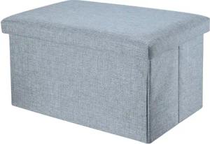 Faltbare Sitzbank 49x30x30cm in Alaska GRAU - Sitzwürfel Stoff mit Stauraum und Deckel in Leinen Optik - Sitzcube Fußablage klappbare Aufbewahrungsbox Truhe Hocker