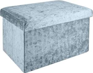 Faltbare Sitzbank 49x30x30cm in Samt Blaugrau - Sitzwürfel mit Stauraum und Deckel mit Samtbezug - Sitzcube Fußablage klappbare Aufbewahrungsbox Truhe Hocker