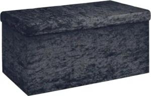 Faltbare Sitzbank 76x38x38cm in Samt Schwarz - Sitzwürfel mit Stauraum und Deckel mit Samtbezug - Sitzcube Fußablage klappbare Aufbewahrungsbox Truhe Hocker