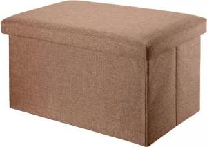 Faltbare Sitzbank 78x38x38 cm in BERNSTEIN BRAUN - Sitzwürfel mit Stauraum und Deckel aus Stoff in Leinen Optik - Sitzcube Fußablage Aufbewahrungsbox Truhe Sitzhocker