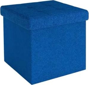Faltbarer Sitzhocker 38x38x38 cm in Meer BLAU - Sitzwürfel mit Stauraum und Deckel aus Stoff in Leinen Optik - Sitzcube Fußablage Aufbewahrungsbox Truhe Sitzbank