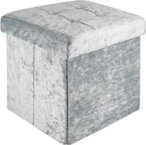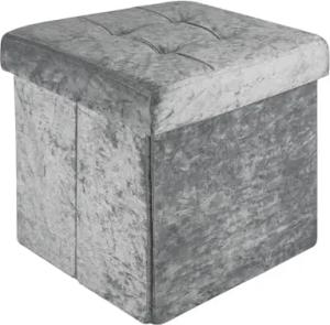 Faltbare Sitzhocker 30x30x30 cm in Samt Grau - Sitzwürfel mit Deckel und Stauraum aus Stoff mit Mulden - Sitzcube Fußablage klappbare Aufbewahrungsbox Truhe Sitzhocker