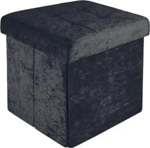 Faltbare Sitzhocker 30x30x30 cm in Samt Schwarz - Sitzwürfel mit Deckel und Stauraum aus Stoff mit Mulden - Sitzcube Fußablage klappbare Aufbewahrungsbox Truhe Sitzhocker