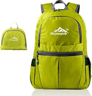 Faltbarer Rucksack Ultraleicht in Limette - 20 x 21 cm / 30.8 x 21.8 x 42 cm - Unisex Wanderrucksack Wasserdicht - 36L - Outdoor Daypack für Camping, Wandern, Reisen, Klettern, UVM.