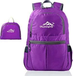 Faltbarer Rucksack Ultraleicht in Violett - 20 x 21 cm / 30.8 x 21.8 x 42 cm - Unisex Wanderrucksack Wasserdicht - 36L - Outdoor Daypack für Camping, Wandern, Reisen, Klettern, uvm.