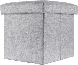 Faltbarer Sitzhocker 30x30x30 cm in Alaska GRAU - Sitzwürfel mit Stauraum und Deckel aus Stoff in Leinen Optik - Sitzcube Fußablage Aufbewahrungsbox Truhe Sitzbank