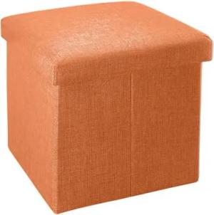 Faltbarer Sitzhocker 30x30x30 cm in MANDARINEN ORANGE - Sitzwürfel mit Stauraum und Deckel aus Stoff in Leinen Optik - Sitzcube Fußablage Aufbewahrungsbox Truhe Sitzbank