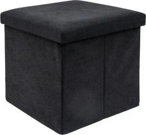 Faltbarer Sitzhocker 38 x 38 x 38 cm in SCHWARZ - Sitzwürfel mit Stauraum und Deckel aus Stoff in Cord Optik - Sitzcube Fußablage Aufbewahrungsbox Truhe Sitzbank