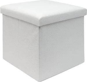 Faltbarer Sitzhocker 38 x 38 x 38 cm in WEIß - Sitzwürfel mit Stauraum und Deckel aus Stoff in Cord Optik - Sitzcube Fußablage Aufbewahrungsbox Truhe Sitzbank