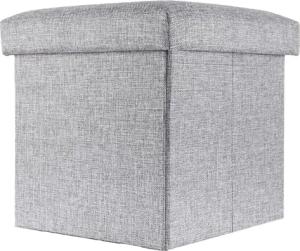 Faltbarer Sitzhocker 38x38x38 cm in Alaska GRAU - Sitzwürfel mit Stauraum und Deckel aus Stoff in Leinen Optik - Sitzcube Fußablage Aufbewahrungsbox Truhe Sitzbank