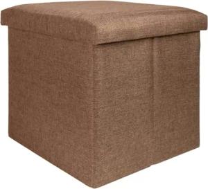 Faltbarer Sitzhocker 38x38x38 cm in Bernstein BRAUN - Sitzwürfel mit Stauraum und Deckel aus Stoff in Leinen Optik - Sitzcube Fußablage Aufbewahrungsbox Truhe Sitzbank