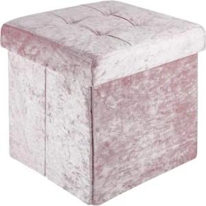 Faltbarer Sitzhocker 38x38x38 cm in Samt Rosé - Sitzwürfel mit Stauraum und Deckel mit Samtbezug- Sitzcube Fußablage Aufbewahrungsbox Truhe Sitzbank