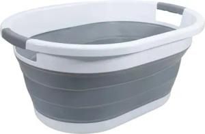 Faltbarer Wäschekorb in Grau-Weiß - 36 Liter- Zusammenklappbarer Faltbarer Wäschekorb mit Griffen- Laundry Baskets, Wäschewanne, Foldable Pop Up Strage Container, Behälter -platzsparend