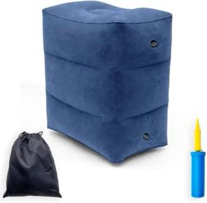 Fußstütze Reise Hocker Kissen in Blau - 46 x 28 x 47.5 cm - Fuß Stützkissen Aufblasbar Faltbar mit Tasche und Luftpumpe für Unterwegs 3 Stufen Höhenverstellbar für Flugzeug Zug Auto Zuhause