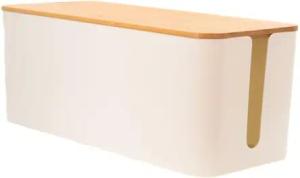 Kabelbox mit Bambusdeckel in Weiß - 32 x 13.6 x 12.7 cm - Kabelmanagement Box, Organizer zum Verstecken von Kabeln und Steckdosenleisten