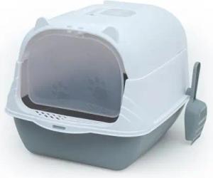 Katzentoilette mit Deckel inklusive Schaufel in Grau-Weiß -51 x 37,5 x 34,5cm- Katzenklo mit Abdeckung, Moderne, geschlossene Toilette für Katzen- WC Hauben Klo-reduzierte Geruchsbildung