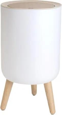 Kosmetikeimer hoher Mülleimer in Weiß mit beiger Abdeckung und Bambus-Optik - 22.2 x 36.4 cm - Tischeimer mit Druckknopföffnung für Bad Büro Küche Abfalleimer mit Kratzschutz