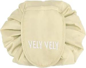 Kosmetiktasche in Cashew BEIGE - 62 x 54 cm - Runder One Step Kulturbeutel mit Kordelzug zum Zusammenziehen mit 2 inneren Reißverschlussfächern zur Aufbewahrung von Make-Up etc.