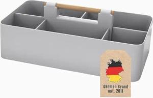 Organizer Caddy mit Griff in Grau - 32x15.5x8 cm , Tragebox Aufbewahrungskorb mit 5 Fächern für Badezimmer, Kinderzimmer, Basteln, Schreibtisch, Kosmetik