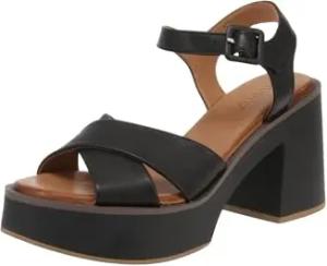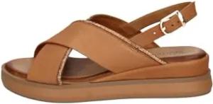 D51007 hellbraune Ledersandalen für Damen mit Kreuzriemen und Schnalle 37