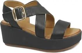 123107 schwarz Schwarze Damen Sandalen Keilabsatz Schnalle Leder 38